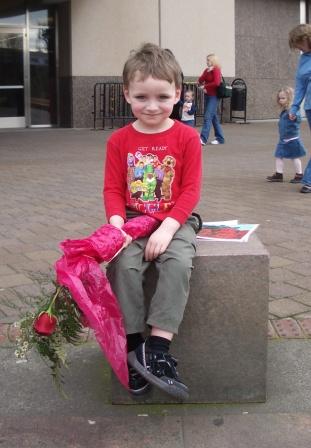 Fortunately Kieran reminded us beforehand that we had to bring a rose for Dorothy the Dinosaur! I thought I might have some tears when some children also had “bones” to present to Wags, but I distracted him by telling him that next time we would take a bone for Wags.