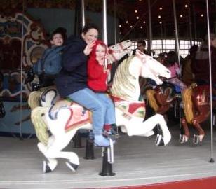 Friday, March 23: We bought 1-week Metro cards so we could take the subway and bus as much as we wanted. The cards were a great deal at $24/person (Kieran and Nicholas were still free). The subway is faster, but we find that we prefer the bus because it allows us to see more of the city. We headed to Rockefeller Center and Times Square, where we watched the ice skating and the people. We went to the mega Toys ‘R Us in Times Square and rode on the enormous ferris wheel in the middle of the store. Then we had a late lunch at Café Europa in Times Square and headed home, tired from jet lag. (Photos below: us on the ferris wheel)