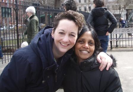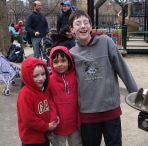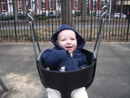 Sunday, March 25: We headed to Greenwich Village for some wandering and hit a few more playgrounds along the way. Nicholas had his first ride on a swing, and he loved it! We had lunch at Baluchi’s, which is a chain of good Indian restaurants. That evening, we went out to an Italian restaurant in the Theater District called Baldoria. It was a great New York restaurant with prime people watching! Ed & Shemara gave Mike a very generous gift certificate for his birthday and also watched the children for us. We had a fantastic dinner and enjoyed our night out on the town tremendously! (Photos below: family in Washington Square playground in Greenwich Village)