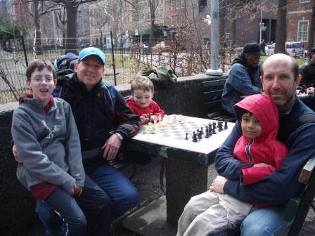 Saturday, March 24: We hit Central Park! We headed to the zoo first and then met up with Ed & Shemara and kids and wandered around to the various playgrounds and the carousel. Chris made friends with several kids with razor scooters and somehow managed to convince them to give him turns! Central Park is an amazing place, a haven in the middle of the city. That evening we had dinner at a Tapas bar—yummy Sangria and “little plates” of goodies, but like a sushi bar, the bill adds up quickly. (Photos below: Central Park)
