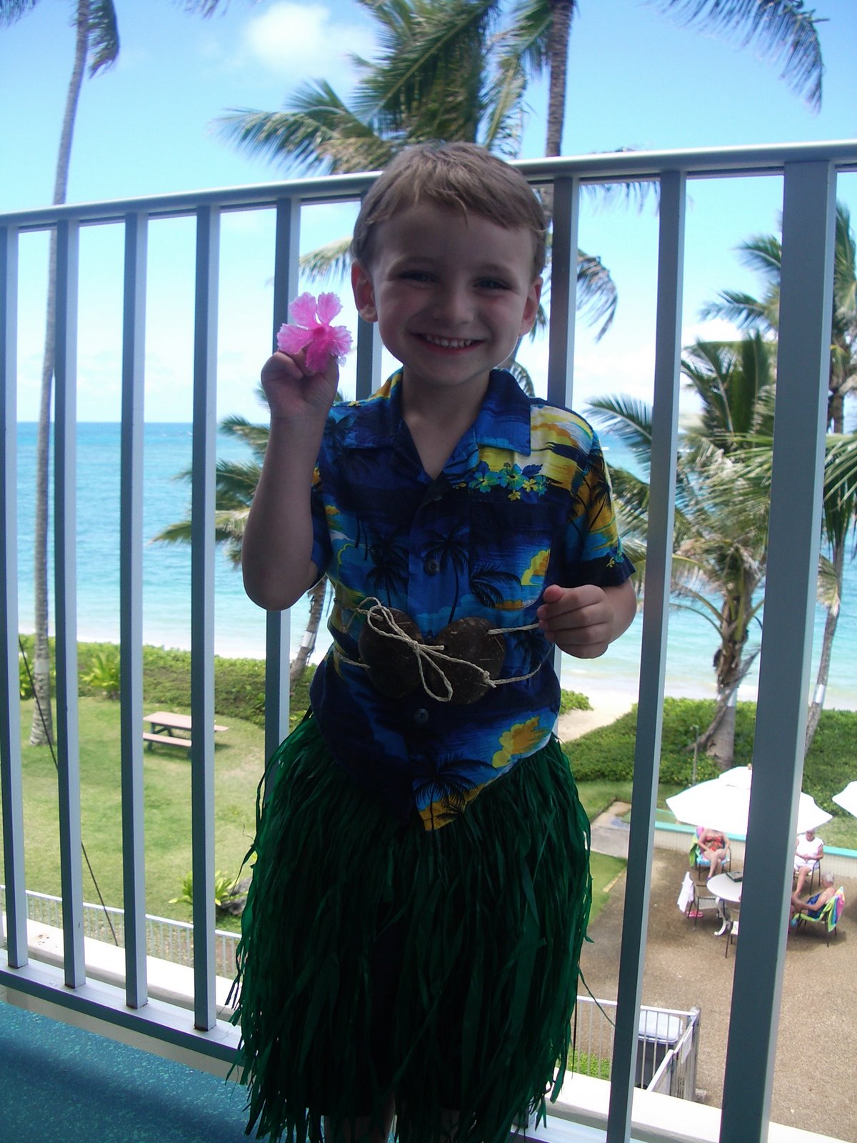 Our little hula girl! (Doesn’t he make an adorable girl?)
