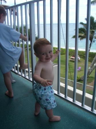 One of the highlights of the week was going to our “Turtle Beach” and seeing lots of giant sea turtles. Nicholas was bemused. One of his favorite past times was standing on the lanai, pointing out to the beach, and saying “Eee! Eee!” At first we thought he was saying “tree,” but then we concluded it must have been “beach.” Who knows?!