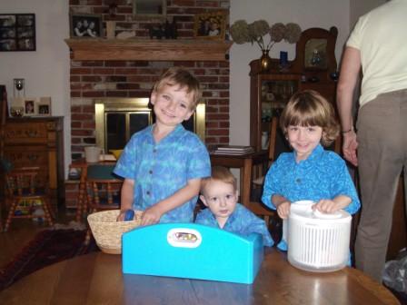 Chris and Kieran seem to be born performers and love the spotlight. It’s interesting to note that both Mike and I liked to perform when we were kids too…although I think that our children have surpassed that comfort level. I still get nervous when speaking in public, although Mike doesn’t seem to. However, I’ve always enjoyed singing or playing musical instruments. Chris and Kieran seem very comfortable in the spotlight and in fact seem to crave it! Chris wrote a song for the talent show and didn’t seem nervous at all about performing it. Kieran continues to do his nightly “plays” each evening before bed. We’ve got them both enrolled in theater classes in the fall!
