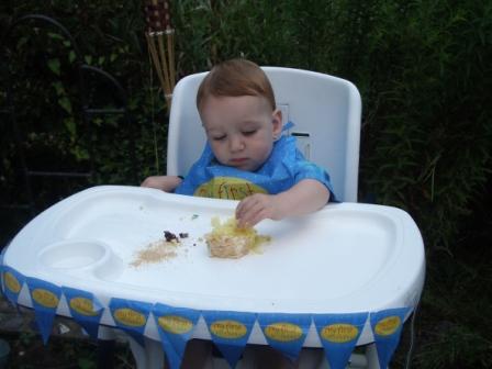Nicholas had his first taste of cake–he enjoyed it but seems to like ice cream even more. He seemed a bit overwhelmed by all the attention. On his actual birthday, we will be at the beach and returning that evening, so we’re not sure how we will celebrate.