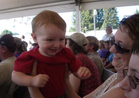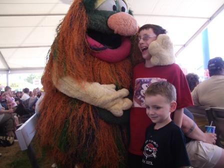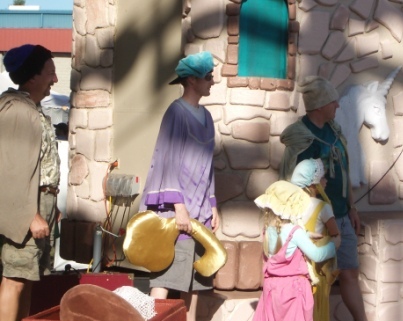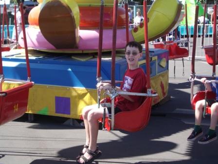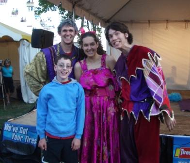 We went on rides, had a picnic lunch, watched a number of performances (including the amazing hypnotist, Travis Fox), participated in a play (photos below), watched another play, visited the animals, bounced in a bounce house (Kieran, that is), and of course Kieran ate shave ice (which pales in comparison to Hawaiian shave ice…I don’t know why he even bothers!).