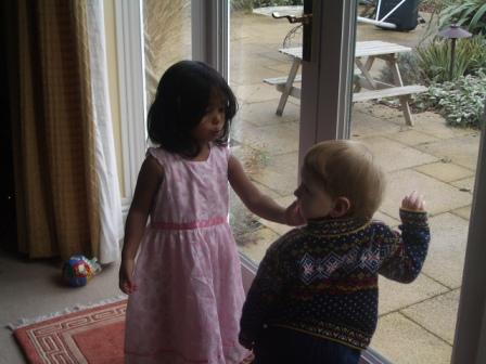 Jessie and Nicholas looking out the window