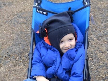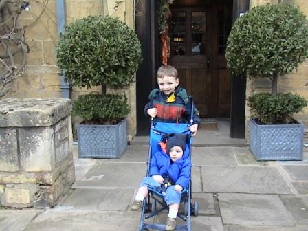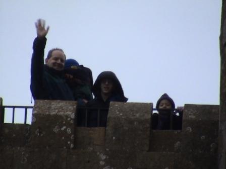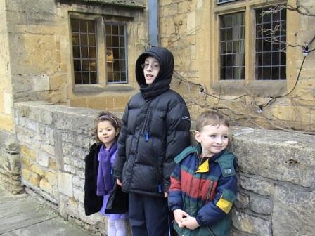 The boys up on top of Broadway Tower, a viewpoint from which you are supposed to be able to see 13 counties (but not on a cloudy winter day!)