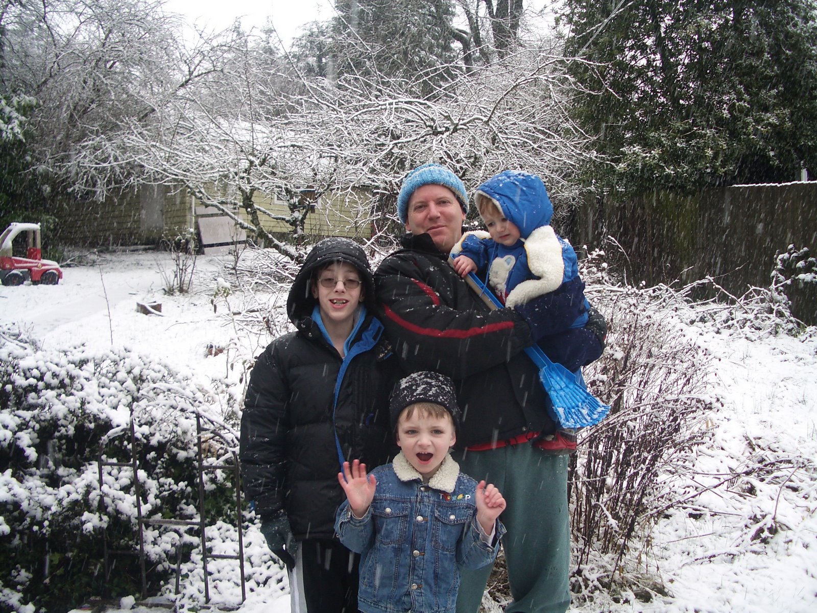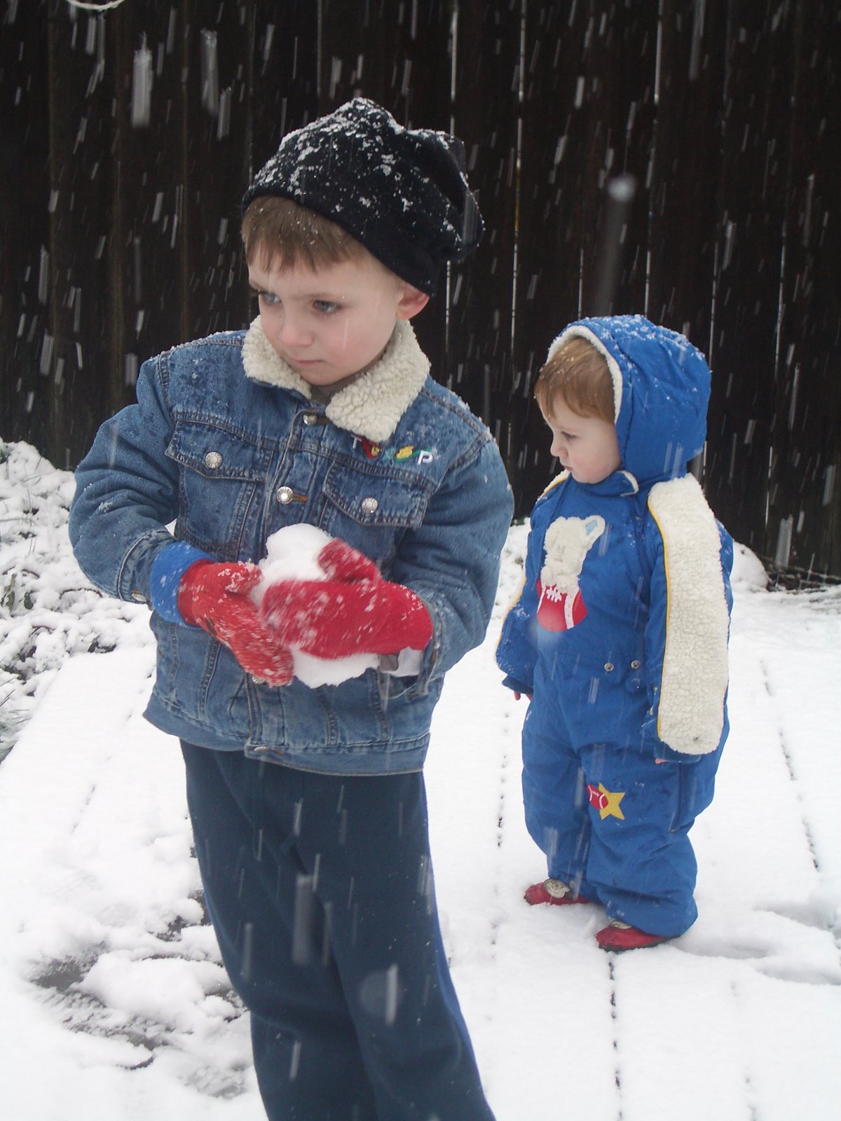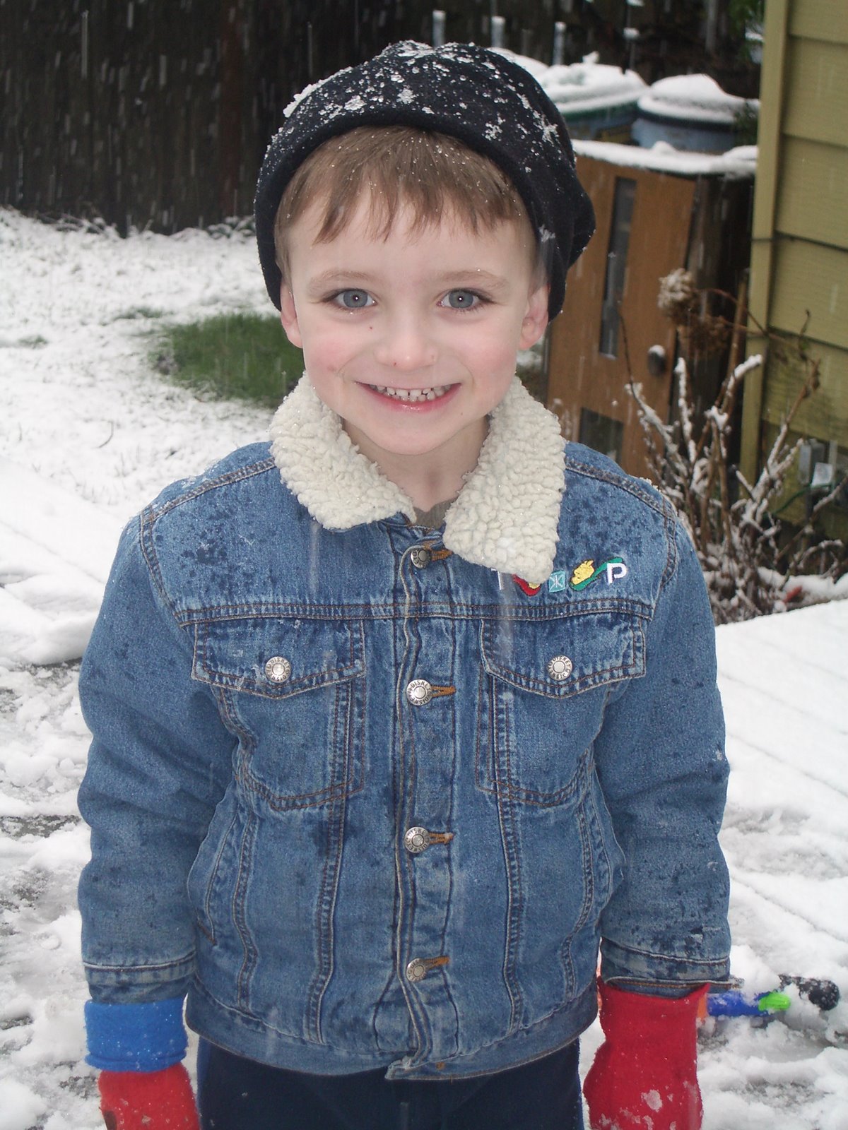 We had a dusting of snow several days last week, and it was the typical “first-snow-of-the-season” Portland paranoia, so that school was 2 hours late when it really did not need to be! But Saturday we woke up to the first proper snow of 2008! At last! It was my type of snow, too–the type that melts by the middle of the afternoon!