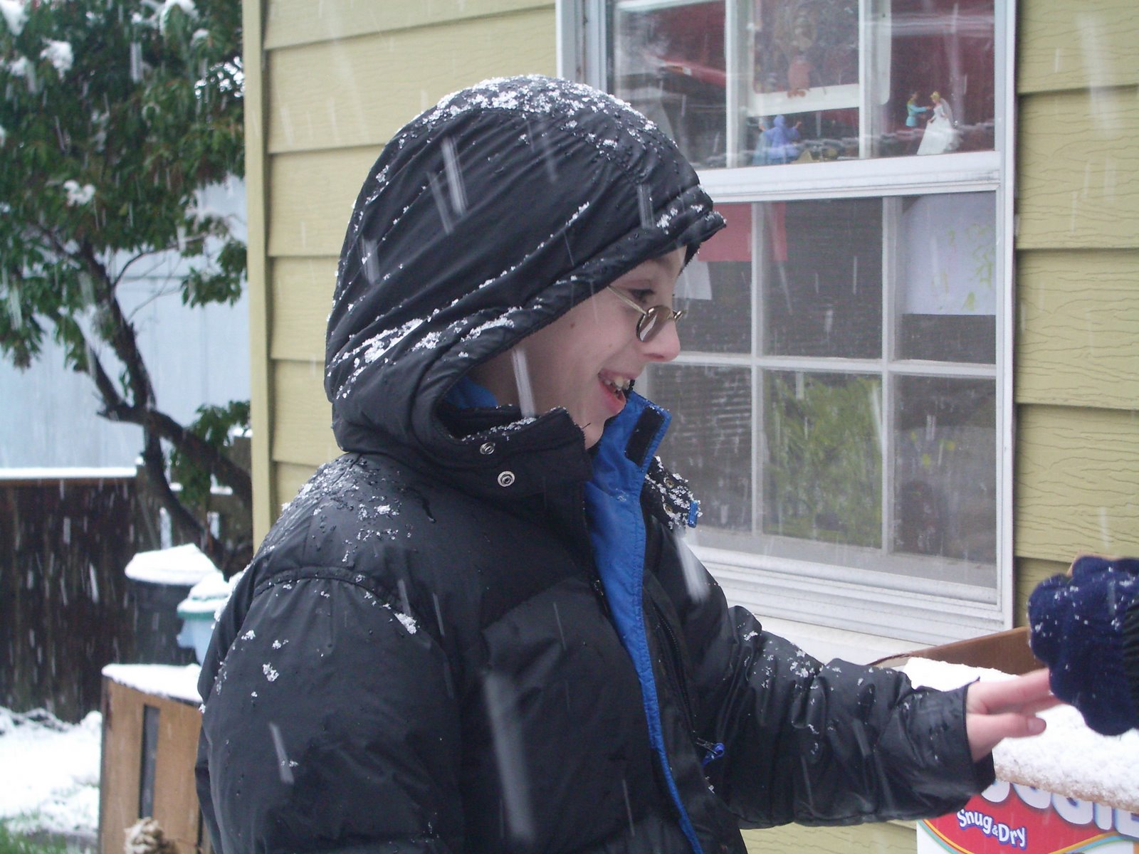 At any rate, I’ve introduced my kids to the fun of snow ice cream, and Kieran is positively obsessed with it.
