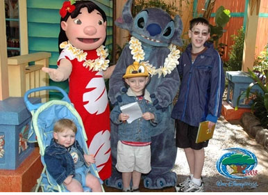 After the Animal Kingdom show, the kids waited in a short line to get autographs from and photos with Lilo & Stitch. Nicholas wasn’t too sure about them. This is the photo BEFORE he burst into tears.