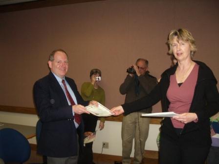 We took Chris out of school this morning so he could attend. When Mike took him back to school, Chris introduced him to the school secretary as “The Newest American Citizen!”