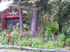 On my last evening in Alaska, we drove out to Girdwood along the Turnagain Arm. We weren’t sure whether we would brave it, because the snow from the evening before had been frozen over in the morning, and we Oregon/Washington travelers are not very intrepid in the snow and ice. However, it had warmed up sufficiently in the afternoon to lead us to believe it would be safe enough. Girdwood is 30 miles away from Anchorage.
