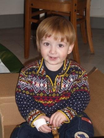 I called home Saturday morning to chat with the boys, and Nicholas said “Love you” on the phone. I’m still in awe of having a 1-year-old who can talk, since neither of my older boys talked at this age. Chris didn’t talk much until 3, and Kieran until 2. Of course, I cannot get him to repeat this trick, the little stinker. Every time I say “Can you say ‘love you’?,” he says “Baba!” (which is his name for his brothers), with a cheeky gleam in his eye. He’s quite the little joker. A few months ago, every time I would ask him to say “Mama,” he would say “Baba”! This morning he said his first three-word phrase: “Bye bye Auntie Deedee,” referring to having said goodbye to my sister yesterday afternoon.