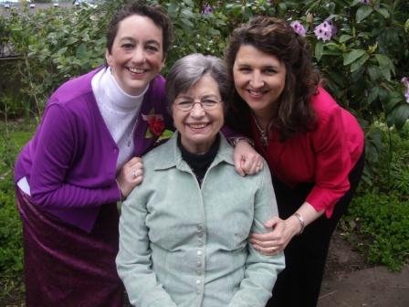 We went to my parents’ house after church for lunch–my dad had made casserole the day before. Mom, Nadine, and I posed for another photo outside in their backyard: