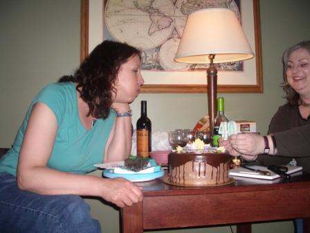 I spent Friday night at the Grand Lodge in Forest Grove, celebrating my friend Shelia’s 40th birthday. It was a great venue, because the bunk bed rooms are only $44 (including tax!) and there’s an onsite soaking pool, theater, and restaurant. We soaked in the pool (see below), had wine and appetizers in our room, listened to some eclectic live music, had dinner in the restaurant, and celebrated Shelia’s birthday with cake and prezzies (English for presents) back in our room. Friday night we were nine (seven spending the night), and in the morning, one more joined us for breakfast. As a teenager, I loved slumber parties…staying up into the wee hours chatting and socializing…and this was just as fun. It is always great to spend time with Shelia, who moved to Idaho last fall just after we had become good friends, and the other women she invited were fun as well.