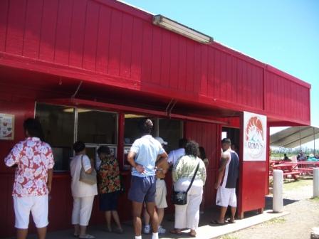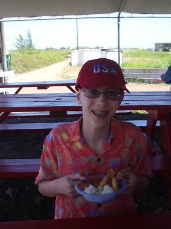One thing our family looks forward to every year on the North Shore is eating fresh shrimp at Romy’s. The town of Kahuku has several shrimp trucks, but our trusty guidebook, Oahu Revealed, recommends Romy’s because they raise and prepare their shrimp onsite so it is very fresh.