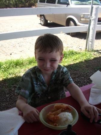 Chris anticipating his shrimp lunch–won ton fried shrimp