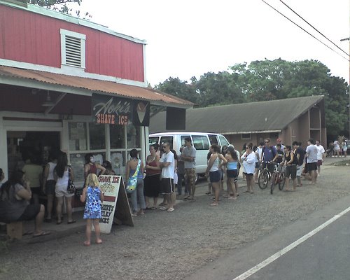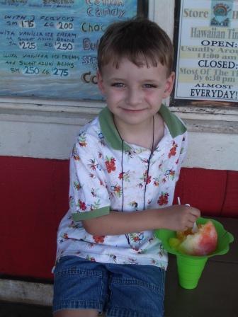 The BEST thing to eat in Haleiwa is shave ice. The most famous shave ice spot in Haleiwa is Matsumoto’s, but we have never been there because the line is always way too long. We prefer Aoki’s, which people in the know report is just as good…yet the line is never as long.