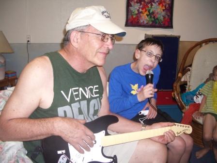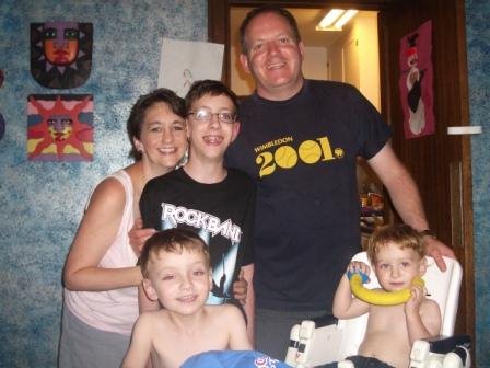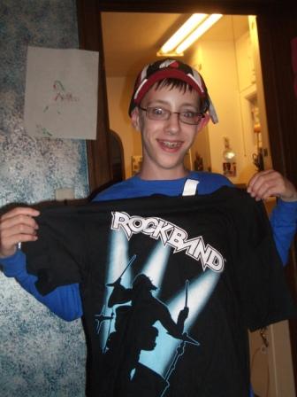 When we awoke, Chris opened up his big birthday present, which had arrived while we were away. He put his saved-up allowance with birthday money from Grandma England, aunt and uncle in Australia, and us into purchasing Rock Band for the Wii. Rock Band is essentially an expanded Guitar Hero game, with electronic guitar, drums, and microphone. I’ve tried my hand at all three, and I’m pretty bad! I think I will sneak down to the family room in the evenings after the kids in bed to practice. Chris has already jumped to the “medium” level while I’m still stuck on “easy” and often get kicked off the stage because I miss so many notes! 😉
