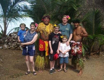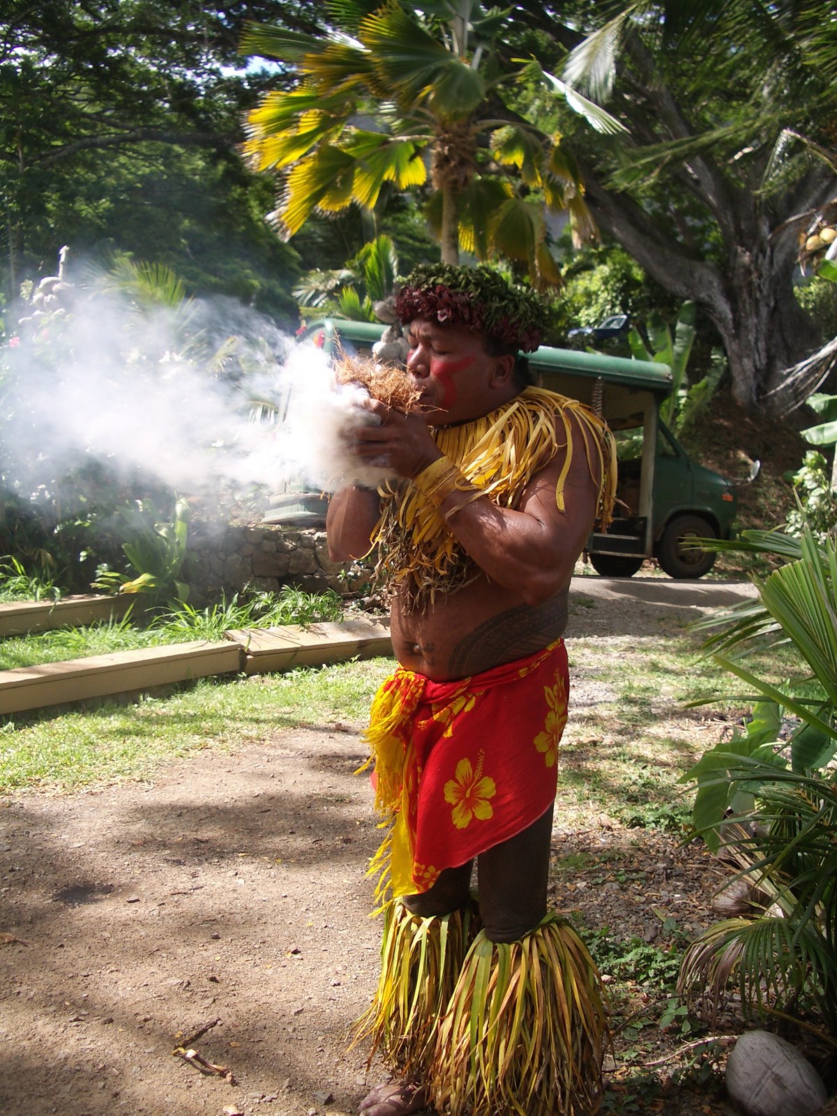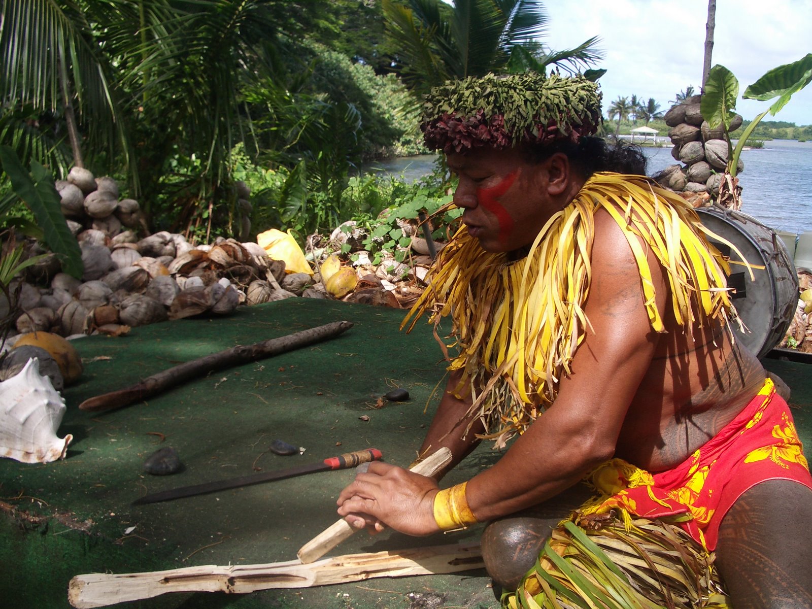 He cracked open a coconut and let us sample the coconut water, and then presented each of us with a headband made of palm fronds: