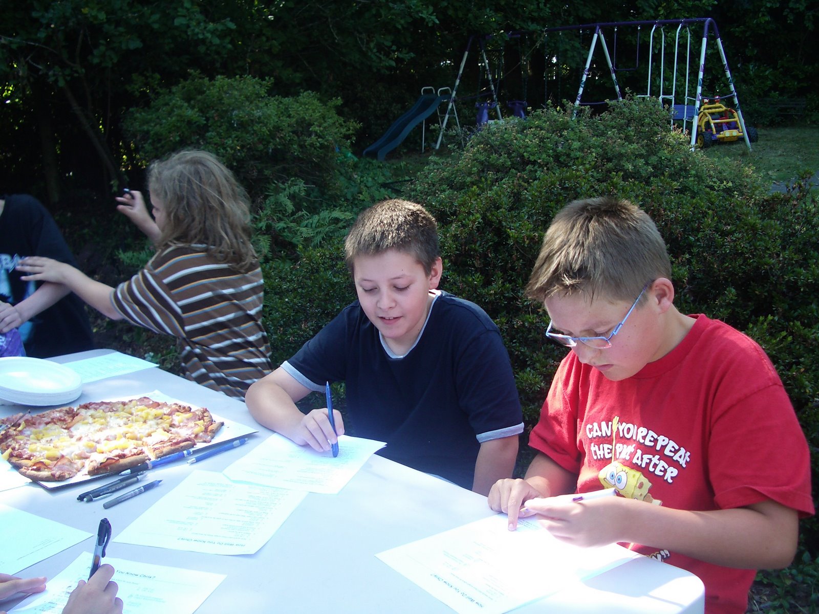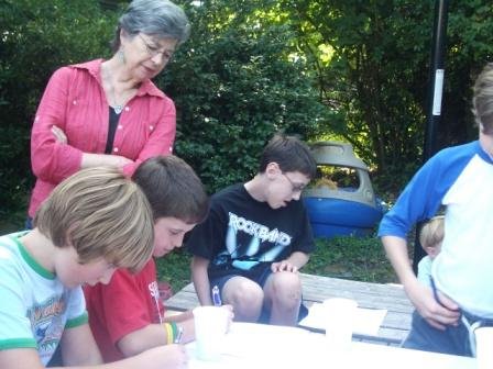 The kids puzzling over the quiz