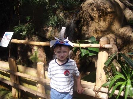 Kieran in the African rain forest exhibit with his new elephant hat