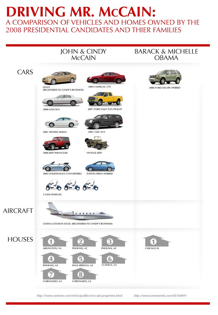 - John McCain owns at least 13 cars.