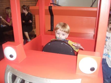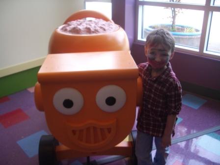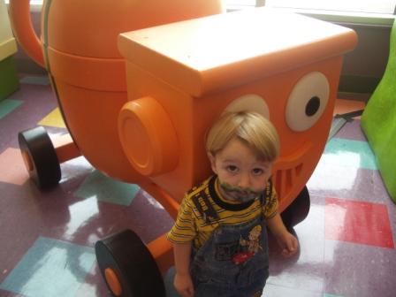 Kieran crawled through the crowds to get in the front when they were getting ready to open the exhibit…and was spotted by the Children’s Museum Board Chair, who asked him to cut the ribbon! Since then, we’ve had a number of ribbon-cutting reenactments! Yet another member of the family who seems to love the spotlight.