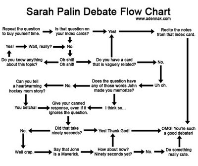 Wondering what she was glancing down at on the podium? Here it is, Sarah Palin’s easy cheat sheet for the VP debate: