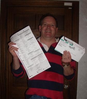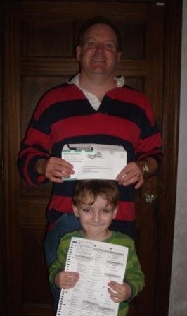 Mike’s enthusiasm got me going this year. The kids are excited about the election, too–see Kieran holding Mike’s ballot below!