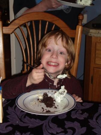 Garrett loving his cake and ice cream: