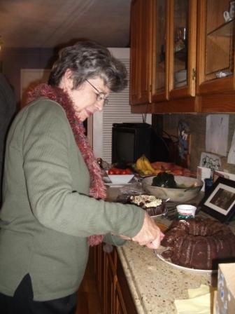 Here is Mom cutting the cake: