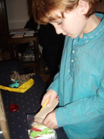 Ryan is a real collector. He loves to collect all manner of items, and the things in the bag are “what Baby and Kitty need for their house.”