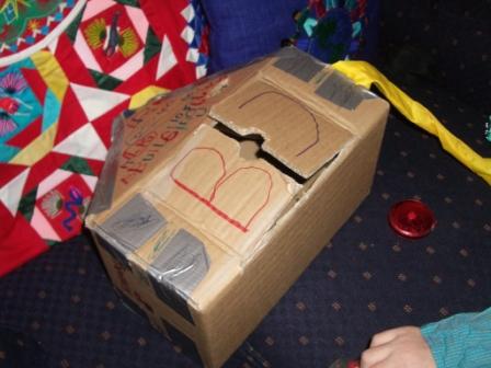 Here is my sweet nephew, Ryan, who is quite the renaissance man. He loves cooking and cleaning implements and power tools! Just call him Tim-the-Tool-Time Stewart! He is showing me a house he made for his baby and his kitty.