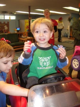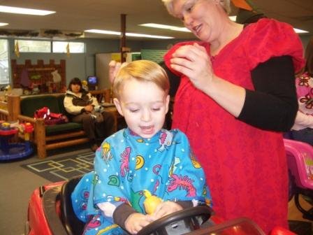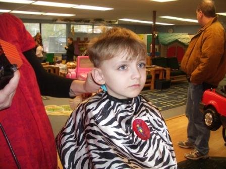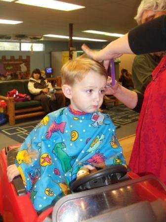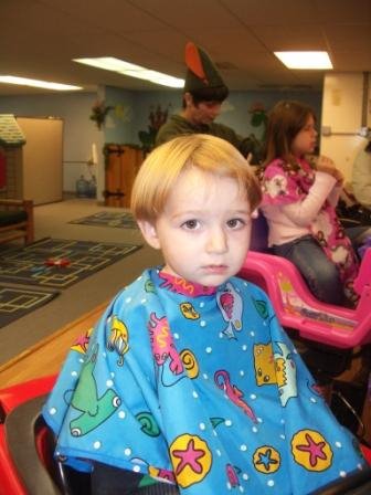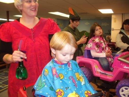Well, now when you’re a kid you can go to a very cool kids’ hair salon to get your hair cut. Our kids’ personal salon is called Kids’ Castle Cuts. They make the first haircut a big deal, with an envelope of the child’s hair snippets. They have all sorts of cool toys for the kids to play with, car chairs, videos and toys to distract, and a lollipop at the end. (And all the styists dress up for Halloween!) No problem talking our kids into visiting the hair salon.