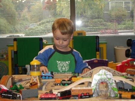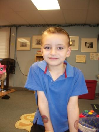 Kieran didn’t graduate from Mom’s hair salon to Kids’ Castle Cuts until he was 3, while Nicholas started at age 2. Hairstylist Kara was desperate to get her hands on Kieran’s hair, but Kieran very definitely announced that he wasn’t going to get his hair cut until he was THREE.