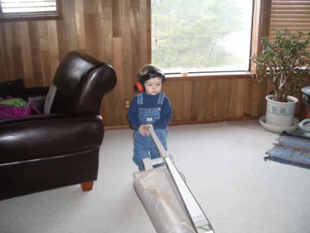 Here is our very own Ryan-wannabe! (Ryan is our sweet nephew who has always had a vaccuum obsession!)