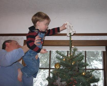 In spite of my previous scroogey post, our children have really been enjoying Christmas preparations this year. At 2, Nicholas is delighted by all the decorations and knows several Christmas carols. His favorites are “Up on the Housetop” and “Jingle Bells.” Kieran has been making lots of pictures of Santa Claus (however, he no longer believes in Santa at age 5!).