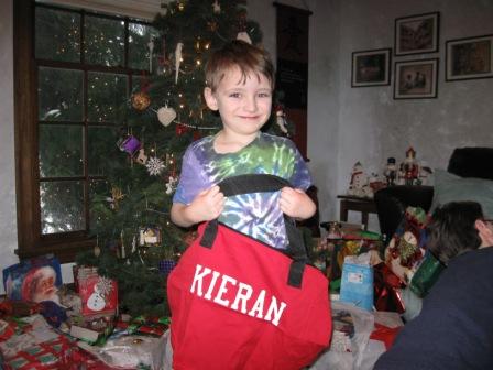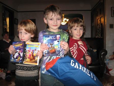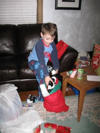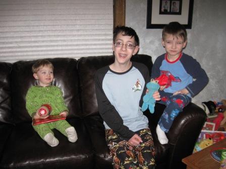 Here are the boys, just up in the morning, getting ready to open their stocking presents and gifts from Santa, England, and Australia: