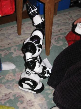 It’s called a Robosapien, and Santa got it on eBay…we haven’t completely figured it out yet, but it’s SUPPOSED to walk…we have figured out how to get it to burp, though!