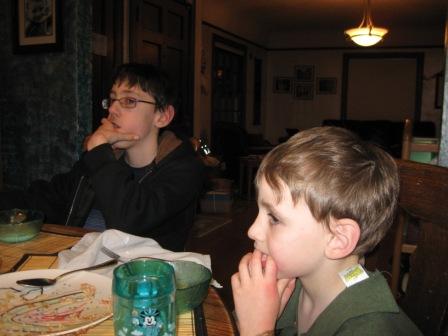 …were very quiet…Moroccan chicken (from the slow cooker), quinoa, and coleslaw for dinner, followed by a reading of a children’s book about Barack Obama, which the three kings brought Kieran for Epiphany.