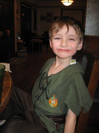 No, he’s not Peter Pan: he’s the scarecrow from “The Wizard of Oz”–Kieran is planning to stage the play, and nearly all his conversations and clothing of late relate to this topic!