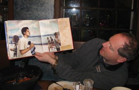 The book reading ended with a spontaneous chant by Kieran and Chris: “O-BA-MA! O-BA-MA!” soon joined by Nicholas and the rest of us.
