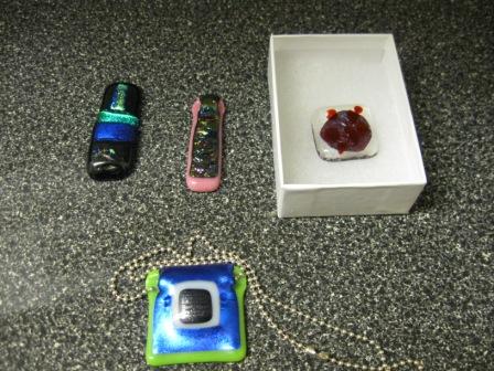 Here are some of my creations…beginners’ fused glass, at best! The tricky thing is that one never knows how exactly things will look after they’ve been fired in the kiln.