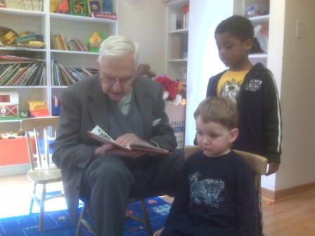 Here is Oscar in the child care room at church, reading to Nicholas and Sam. So sweet!
