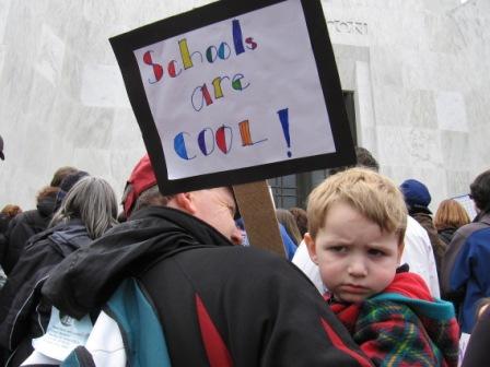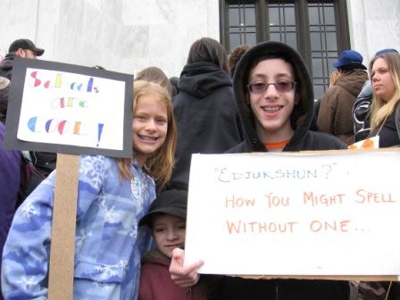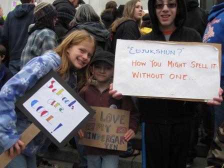 Yesterday Mike and the kids joined our friends Drew, Laurie, and Sophie and 5,000 other committed citizens in a rally on the steps of the Oregon State Capitol…to urge lawmakers to maintain and find other funding to sustain our Oregon schools.