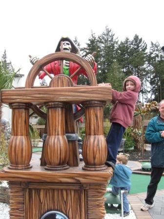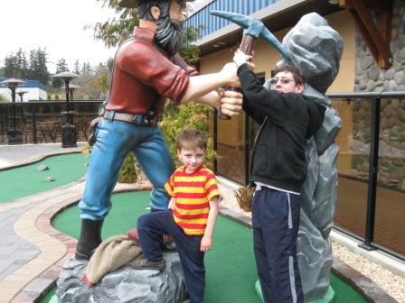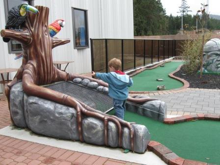 Tuesday’s forecast called for rain, so we had a lazy morning, sitting around the house and enjoying the views and taking in the hot tub. After lunch we decided to take the kids out of the house. We took them to an indoor play zone in Langford, which is about 20 minutes away from the house we are staying at (in East Sooke). Because the Canadian kids are in school this week (last week was their spring break), they offered a discount rate for $4.99(C) per child, adults free. We spent a fun afternoon letting them run around (while Mom and Dad went to Costco!).