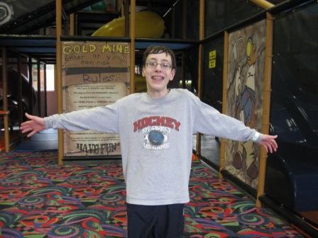 Chris was by far the oldest kid there (most of them were preschoolers, because of the school year), but he good-humoredly ran around with the little kids and played with his little brothers. Fortunately, the play zone also had a room called a “Balladium,” where for an extra fee you could shoot foam balls at other people with stationery air guns. Chris, Kieran, and I enjoyed ourselves in a foam ball fight!