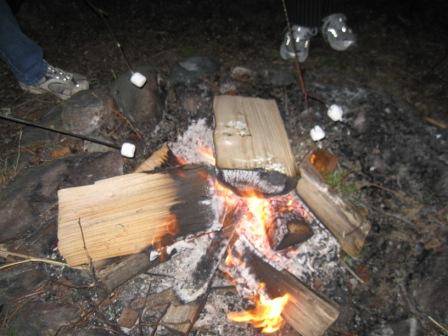 To our delight, we were successful. I told Kieran to run back in the house and announce to everyone, “YE OF LITTLE FAITH!” It was a great fire! Out came the marshmallows, graham crackers, and Hershey’s bars. All the Canadian supermarket had for Hershey bars were the kind with almonds. Odd for s’mores, but they turned out to be very tasty that way! Chocolate is always better with nuts, anyway!