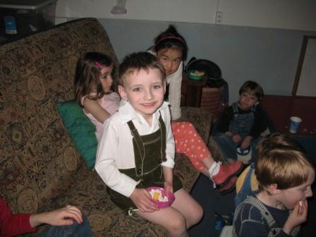 Kieran chose his guests very carefully–beyond family and his godparents, he invited his kindergarten classmates who would get along well together and would go along with the whole “Sound of Music” routine. One classmate with whom he has had several playdates was deemed too “rough and tumble”!